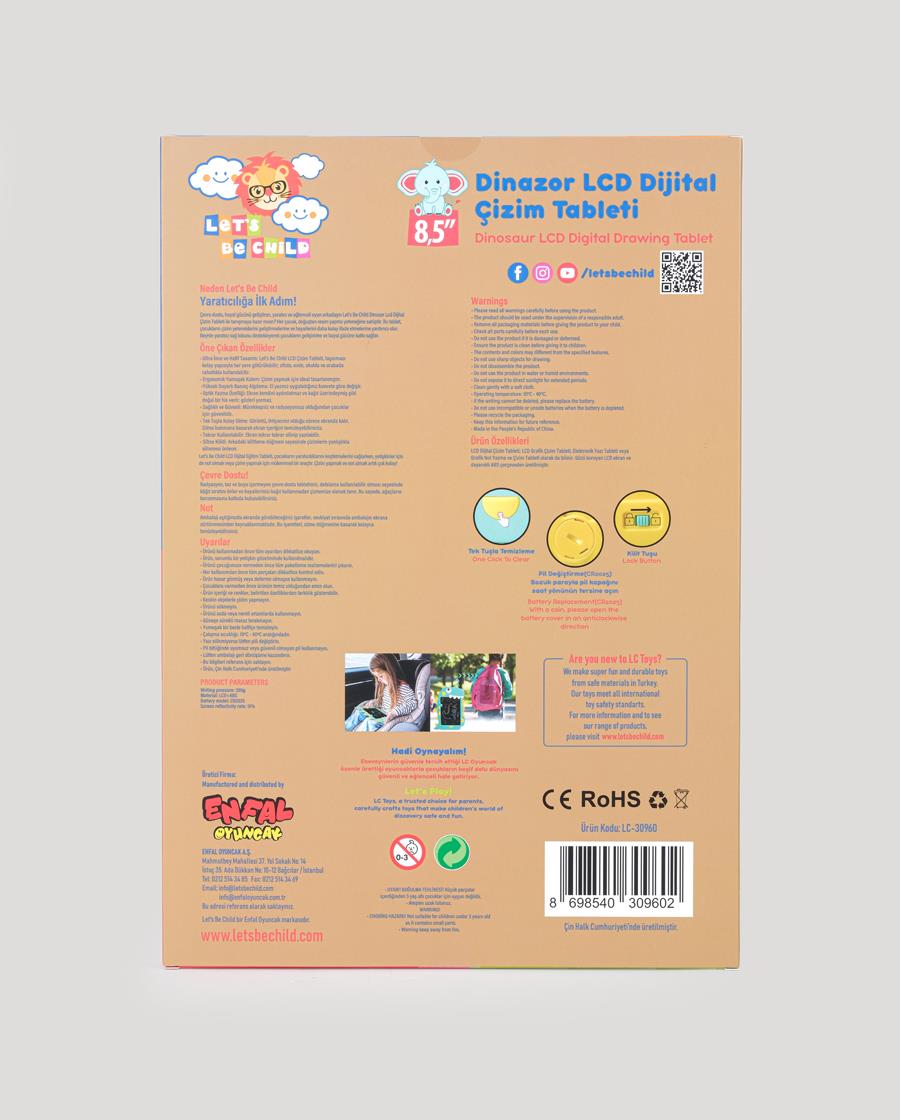 Let's Be Child Dinazor Çizim Tableti ultra ince tasarımı sayesinde hafif ve taşıması kolay bir üründür.
