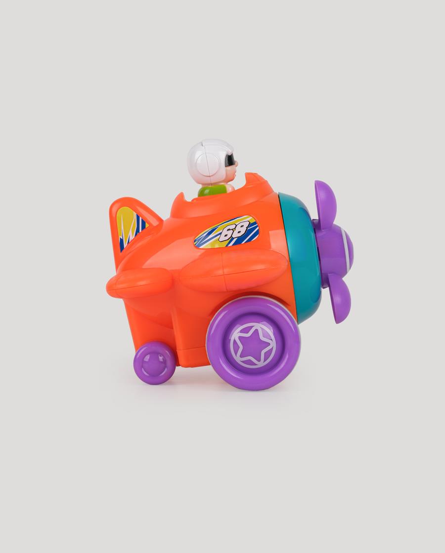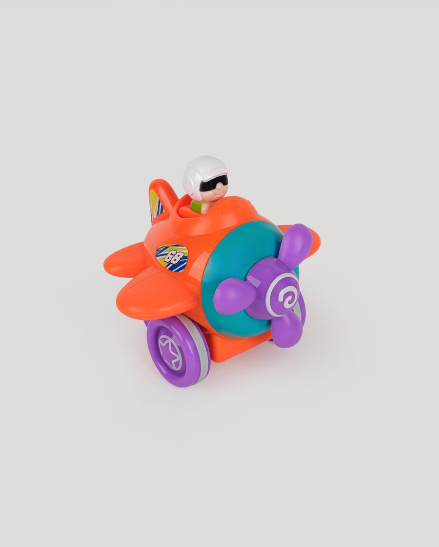 Sevimli pilot figürü, dönen pervanesi ve renkli tasarımı sayesinde çocukların ilgisini çeker. Bas–bırak hareketiyle ilerleyen bu oyuncak uçak, çocukların hem eğlenmesini hem de motor becerilerini geliştirmesini destekler.