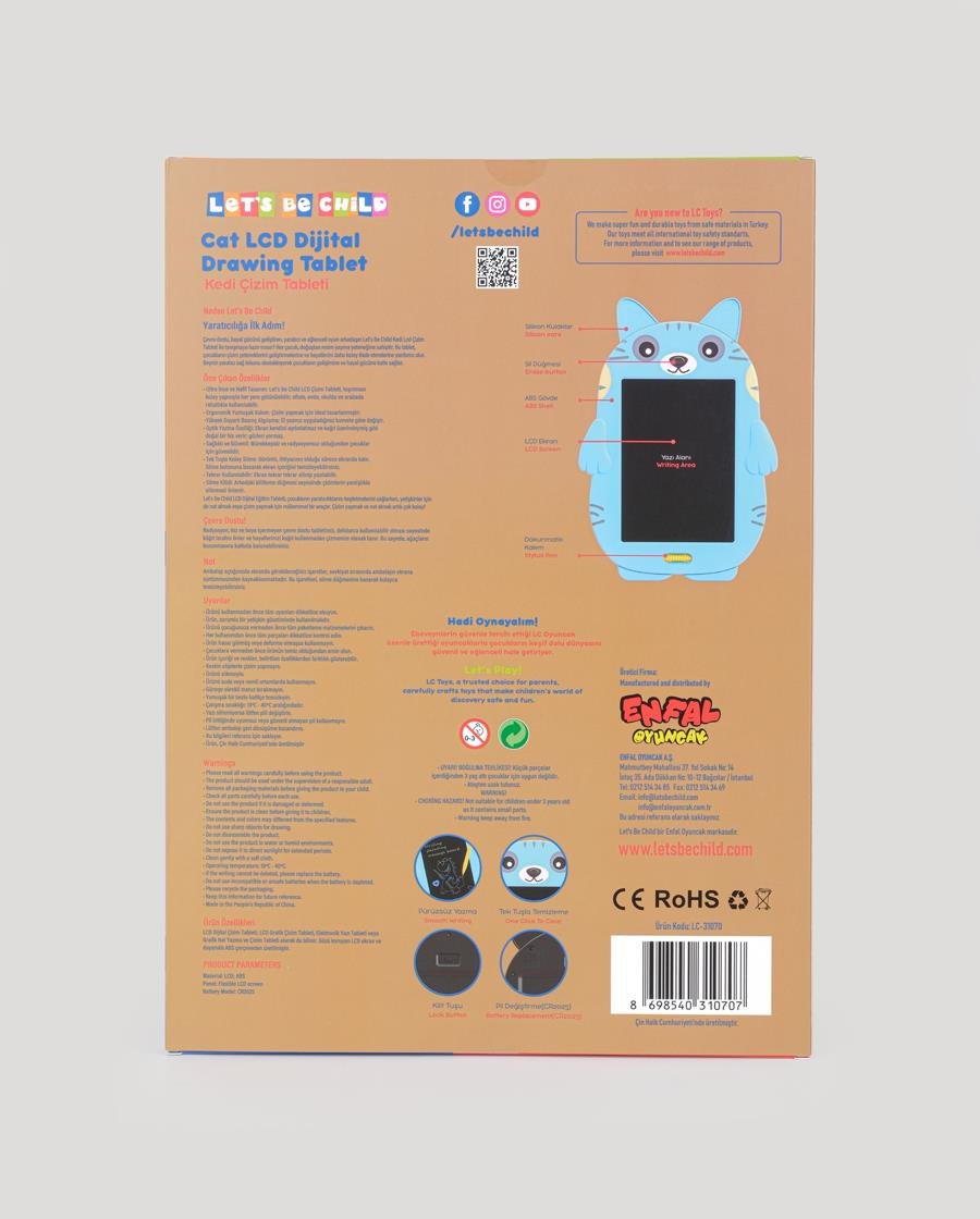 Çevre dostu, hayal gücünü geliştiren, yaratıcı ve eğlenceli oyun arkadaşın Let’s Be Child Sevimli Kedi Dijital Çizim Tableti 8,5 inç ile tanışmaya hazır mısın? Her çocuk, doğuştan resim yapma yeteneğine sahiptir. Bu tablet, çocukların çizim yeteneklerini geliştirmelerine ve hayallerini daha kolay ifade etmelerine yardımcı olur. Beynin yaratıcı sağ lobunu destekleyerek çocukların gelişimine ve hayal gücüne katkı sağlar.