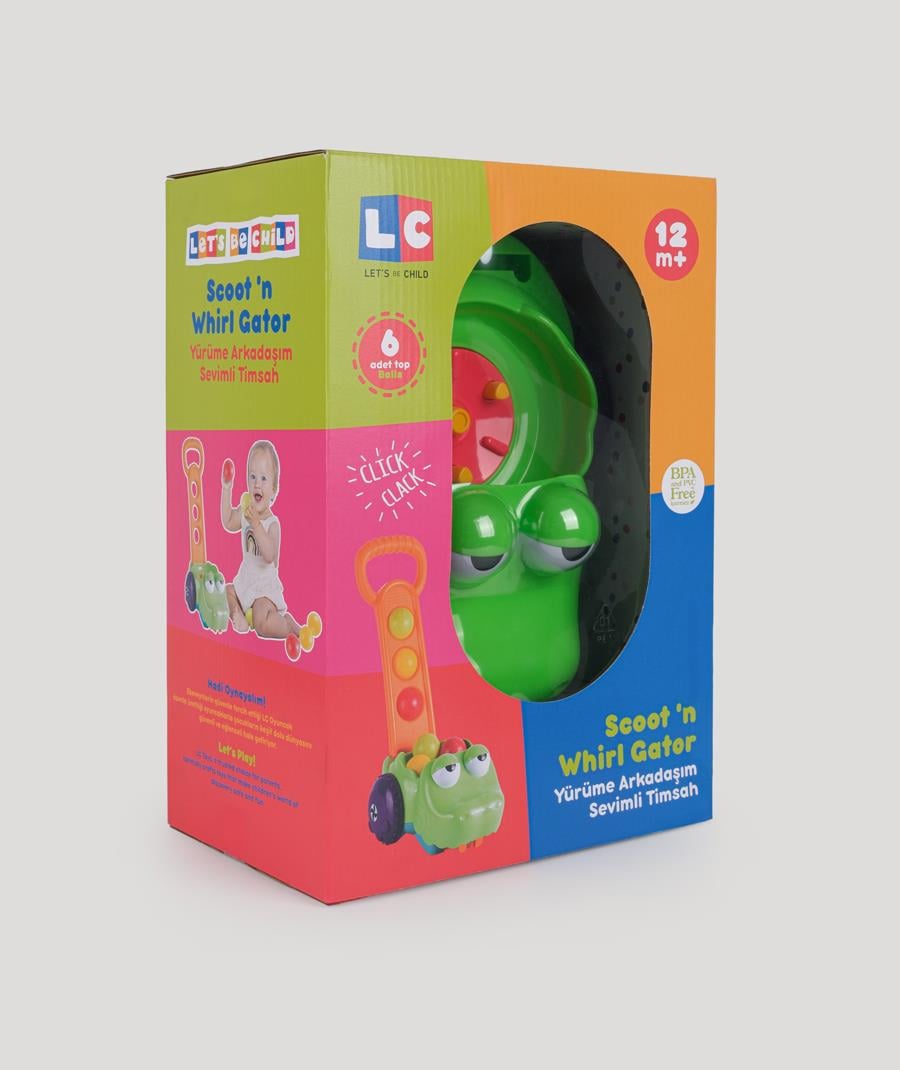 Sevimli timsah tasarımı ve hareketli renkli toplarıyla çocukların ilgisini çeker. İtmeli yapısı sayesinde hareket ettikçe toplar döner ve oyun süreci daha eğlenceli hâle gelir. Bu etkileşim, yürümeye olan motivasyonu artırırken oyunla öğrenmeyi destekler.
