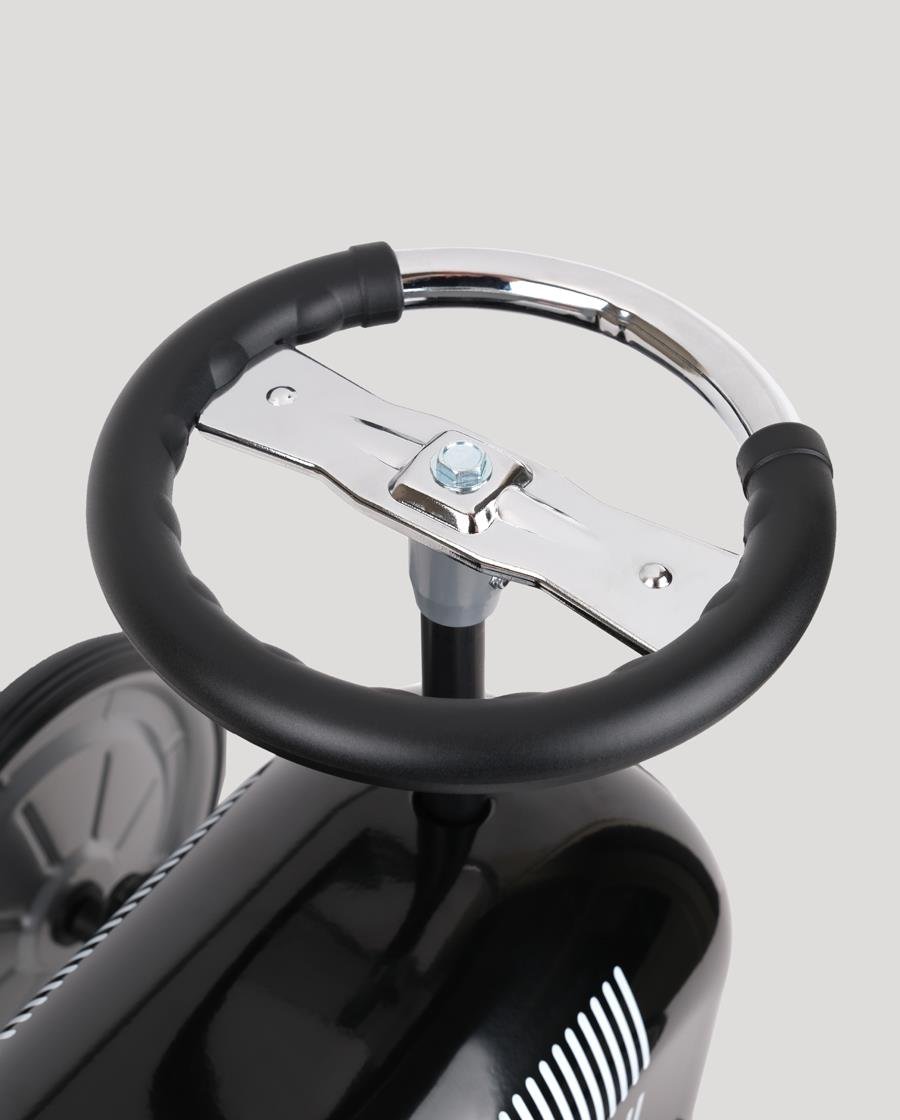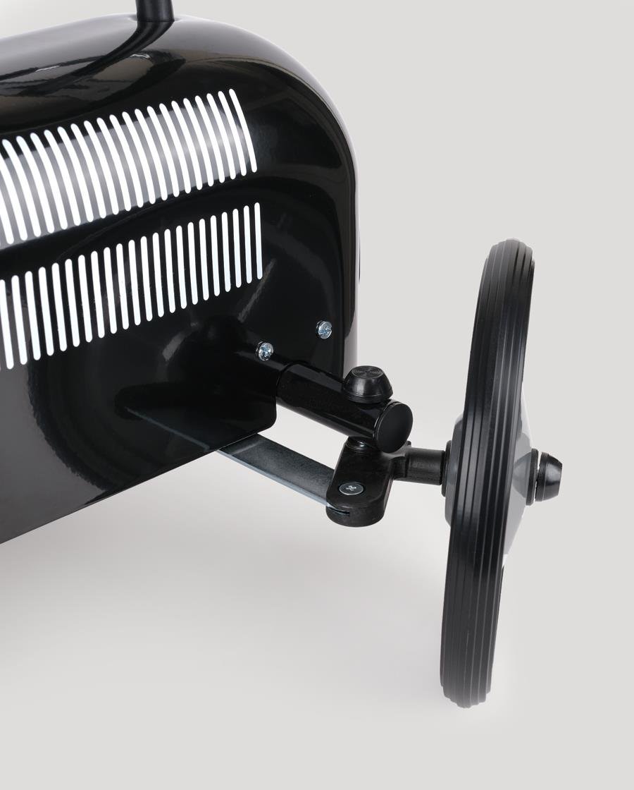 Retro detayları, sade siyah rengi ve metal gövdesiyle sadece bir oyuncak değil; çocuk odalarına nostaljik bir karakter kazandıran zarif bir parçadır. Estetik görünümüyle dikkat çekerken, sağlam yapısıyla uzun süre güvenle kullanılabilir.